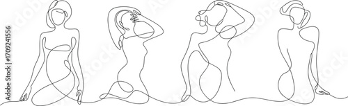 Continuous line drawing of women body, minimalist female sketch art, abstract modern fashion illustration, elegant contour style, simple artistic design