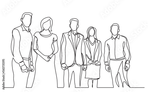 continuous line drawing vector illustration with FULLY EDITABLE STROKE of people tam standing looking