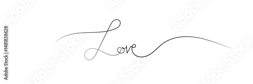 Continuous line drawing word Love for wedding, valentine card background, logo. Calligraphy letter text love word wedding background. Vector illustration love concept. EPS 10 . Vector Illustration .