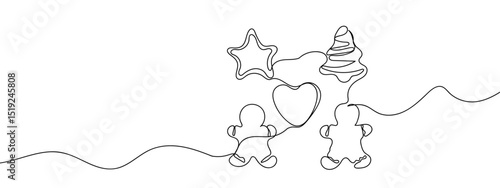 Continuous line, various Gingerbread man, cookies Line Art Vector Transparent Background Edit Stroke.