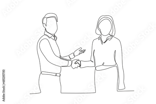 Continuous one line drawing a boss shaking hands with best employee. Single line draw design vector illustration