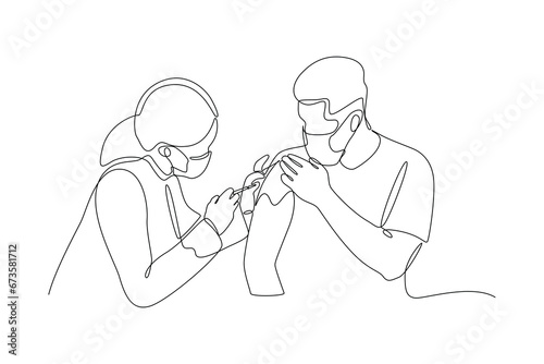 Continuous one line drawing Medical examination at clinic. Medical concept. Doodle vector illustration.