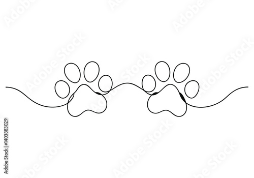 Continuous one line drawing of a dog paw print in minimalist vector outline style, isolated on white background