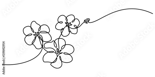 Continuous one line drawing of cherry blossom. Simple flower blossom line art vector illustration, Hand drawn cherry blossom. Sakura branch with flower one continuous line art. Blooming Apple tree pro