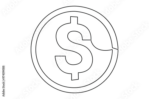 Continuous one line drawing of dollar sign Minimalism design outline vector