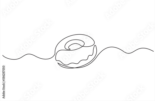 Continuous one line drawing of fresh donut. World food day concept. Continuous line draw design graphic vector illustration.