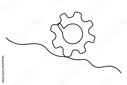 Continuous one line drawing of Setting icon isolated on white background outline vector illustration