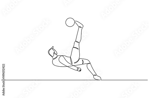 Continuous one line drawing of Soccer player Performing Bicycle Kick. Single line drawing illustration of Football player with a ball. World Football Day concept vector art. Doodle line illustration.