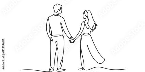 Continuous one line drawing vector illustration of a couple holding hands vector