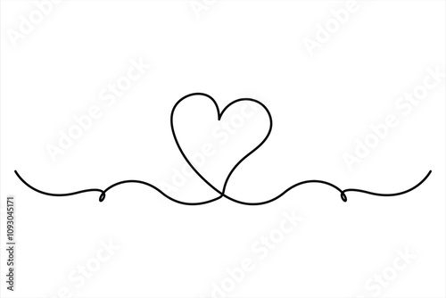 Continuous one line Heart and love sign symbol drawing Isolated on white background art illustration