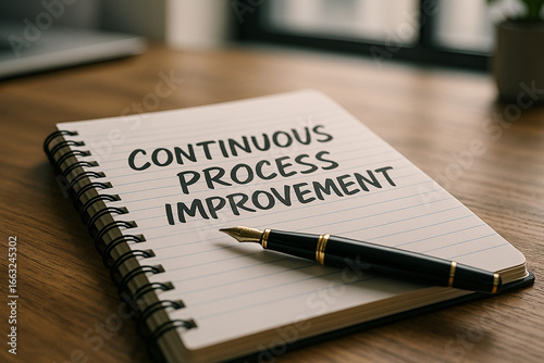 Continuous Process Improvement text on notepad with pen placed diagonally across page