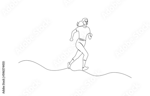Continuous single drawn one line girl on a run, single continuous line drawing of a young woman athlete running fast.Sport running woman concept of sports, fitness, athletics, running.