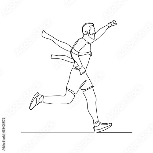 Continuous single line drawing of male runner athlete running sport sketch art editable stroke vector illustration