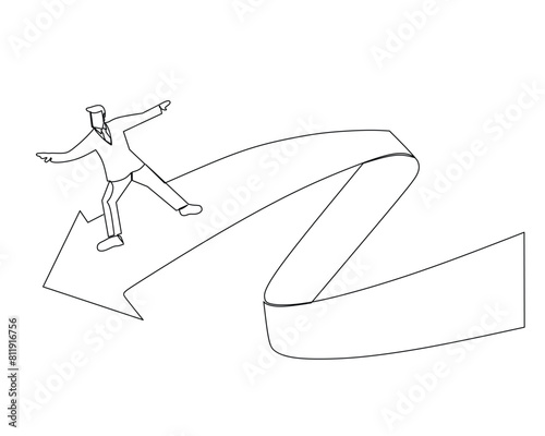 Continuous single one drawing businessman surfing on arrow direction. vector illustration design for Business growth strategy concept.