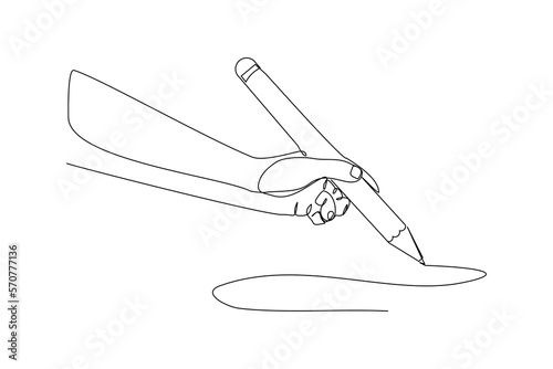 Continuous single one line drawing of hand holding big pencil. Vector illustration concept of business contract deal, education, secretary, writing