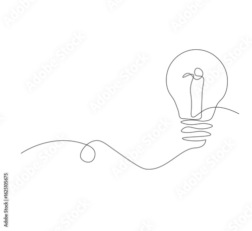 continus line Light bulb isolated on white light bulb one line vector art illustration. white background