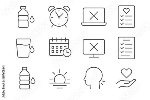 Contour icon collection line prompt set outline positive habit icons minimal stroke