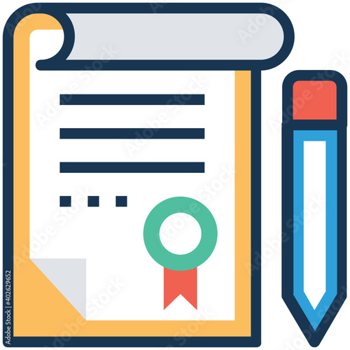 Contract document with pen, business project deal Vector Icon