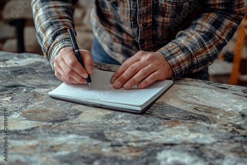 Contractor assesses material costs while preparing estimates in a workshop. Generative AI