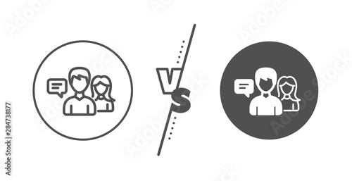 Conversation sign. Versus concept. People talking line icon. Communication speech bubbles symbol. Line vs classic people talking icon. Vector