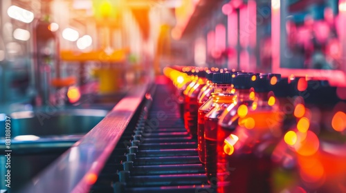 Conveyor belt in food manufacturing close up, focus on, copy space, vibrant colors, Double exposure silhouette with processed goods