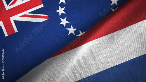 Cook Islands and Netherlands two flags textile cloth, fabric texture