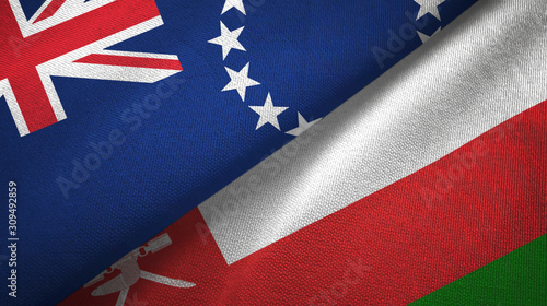 Cook Islands and Oman two flags textile cloth, fabric texture