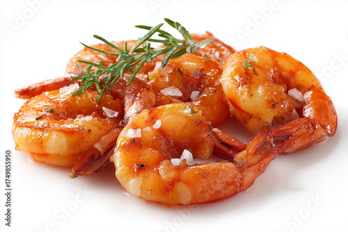 cooked sea prawns, bright orange color, appetizing presentation, isolated on white background