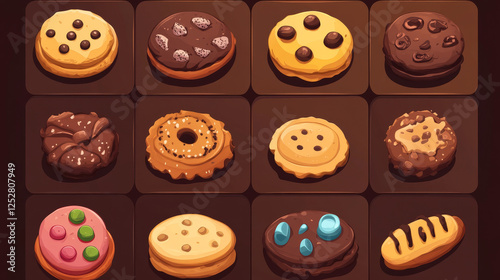 Cookie game interface cartoon set. Vector illustration of ui elements, menu, player level score, win, lose banners and options buttons. Creative collection of mobile and computer app window design