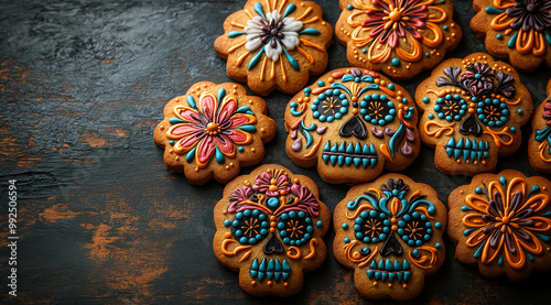 Cookies in the shape of skulls for Halloween, created with Generative AI technology.