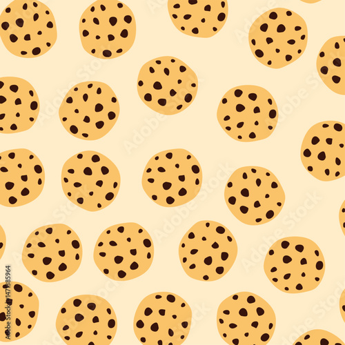 cookies pattern. cookies background. chocolate chips cookies seamless pattern, bakery product. For print, textile, web, home decor, fashion, surface, graphic design