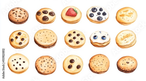 Cookies set. White background. Watercolor illustrations