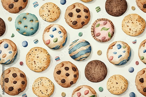 Cookies vintage full background pattern, watercolor, sweet and cute (Ai generated)