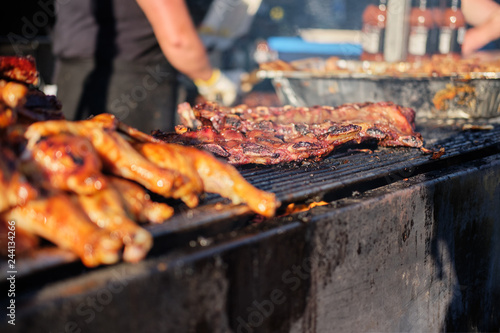Cooking barbecue at outdoor summer grill festival in Vancouver