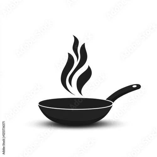 Cooking pan with steam, kitchen icon, food preparation