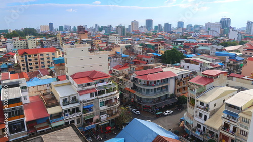 Cool Aerial Drone View of Phnom Penh, Cambodia