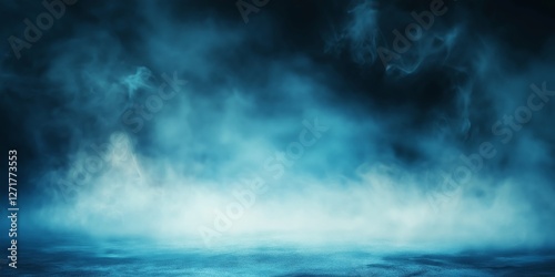 Cool blue tones create an abstract background with ground-level mist, evoking a serene and mysterious atmosphere ideal for creative projects