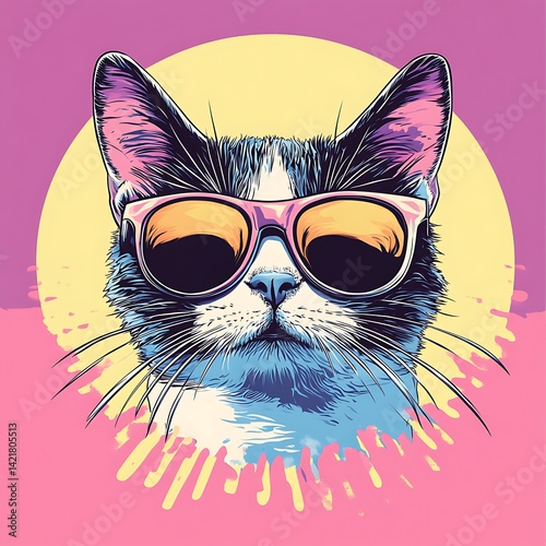 Cool Cat: A stylish illustration of a cool cat wearing retro sunglasses, exuding a sense of effortless coolness and vibrant personality.