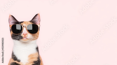 Cool Cat in Sunglasses Close-up Portrait, Pink Background, Minimalist Composition, Fashion Pet, Cat Fashion Cat, Sunglasses