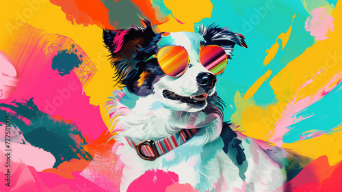 cool dog with sunglass in a stunning background ultra realistic Generative AI
