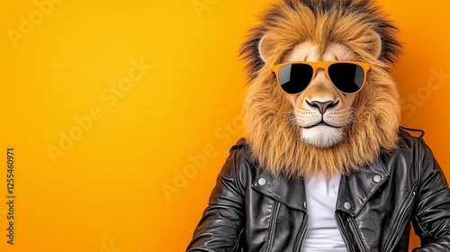 Cool Lion Costume with Sunglasses Against Bright Yellow Background