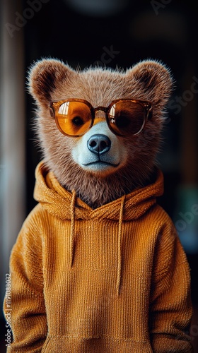 Cool Polar Vibes: Realistic Polar Bear in Sunglasses with Stunning Fur Texture and Minimal Background
