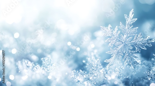 Cool winter background with icy sparkles and snowflakes on a light backdrop, creating a frosty and fresh winter atmosphere