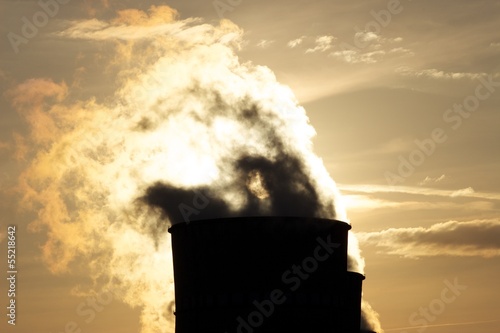 Cooling towers gas against sunset