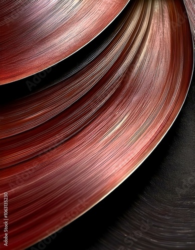 Copper red black metallic background with pattern digital art illustration layers lines curves round circle circular disc disk metal