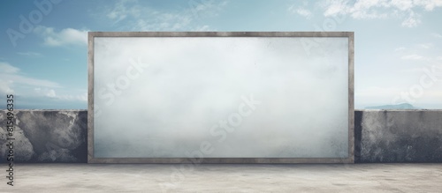 Copy space image of a picturesque blue sky with a frame placed on a rough cement wall devoid of any human presence