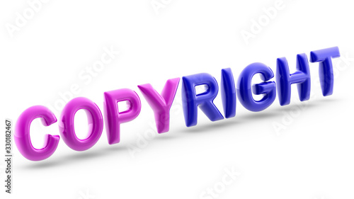 Copyright in white background. 3D Illustration.