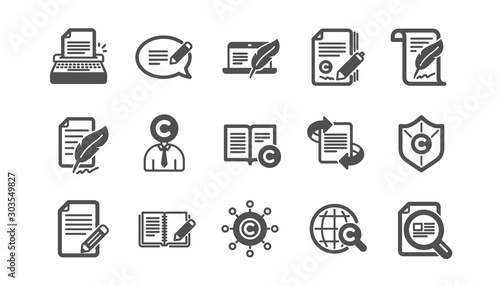 Copywriting icons. Copyright, Typewriter and Feedback. Legal content classic icon set. Quality set. Vector