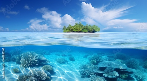 coral blue water in ocean, oceanic view, fantastic view of the ocean