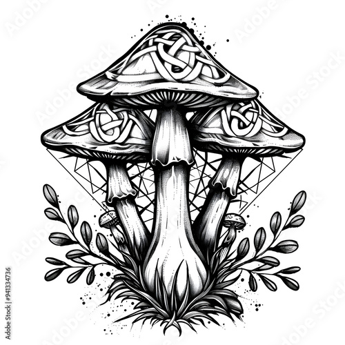 Coral Mushroom very simple traditional tattoo flash styles illustration
